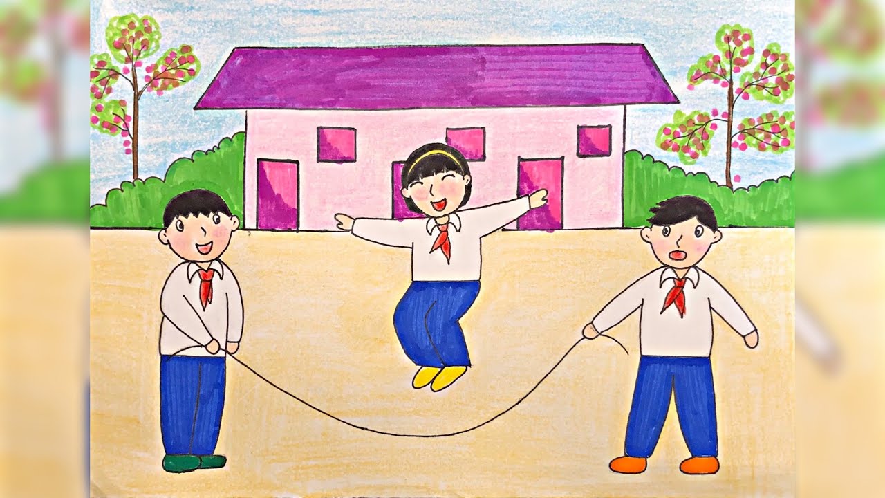 Sân trường là nơi thể hiện rõ nhất sự hạnh phúc của học sinh. Bạn có thể vẽ các bạn đang: